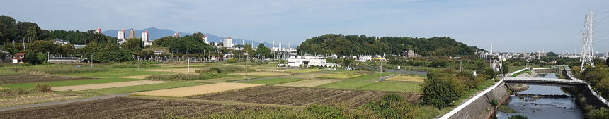 |  稲刈りの終わった大庭田園風景、湘南ライフタウン、大庭城址公園、引地川 (2025.10.2) |