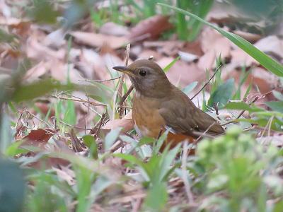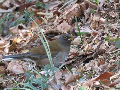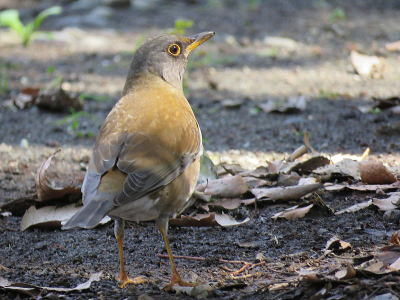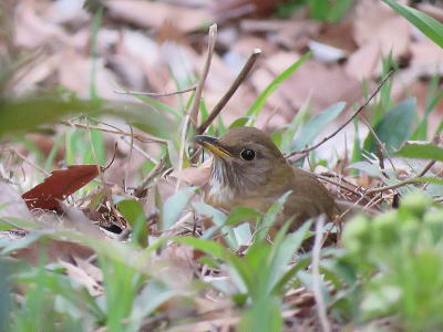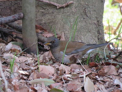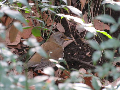 | シロハラ[3月23日] ♀でしょう、♂とは反対側にいます | シロハラ[3月23日] ♂でしょう、シメと一緒にガサゴソ落ち葉をひっくり返しています | |