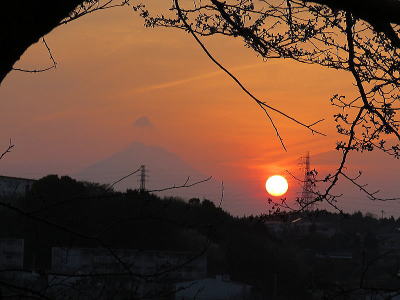 | 富士山と夕日[3月30日] 5日前はダイヤモンド富士の筈でしたが、あいにく曇っていました | ||