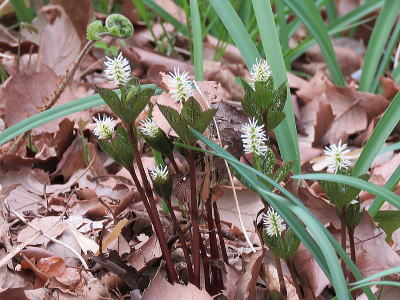 | カルガモ[3月30日] 普段は見掛けない池の上の林にいました | ヒトリシズカ[3月30日] 本当に静かに咲いています | |
