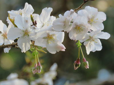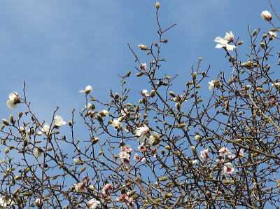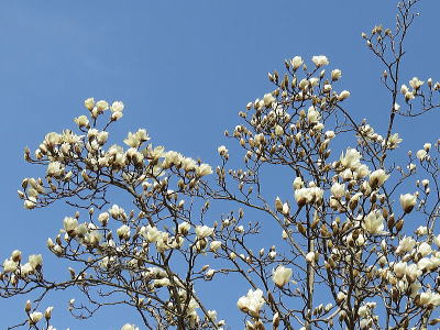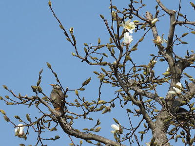 | アオジ[3月12日] 寒くて人出が少ないので道の真ん中で採餌していました | コブシ[3月8日] 咲くのはハクモクレンより遅いです | |