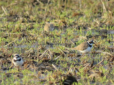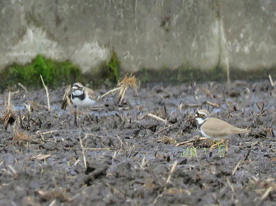 | コチドリ[3月21日] 10羽位の群れが2組居ました | コチドリ[3月21日] 水が溜まっていたので期待していました | |