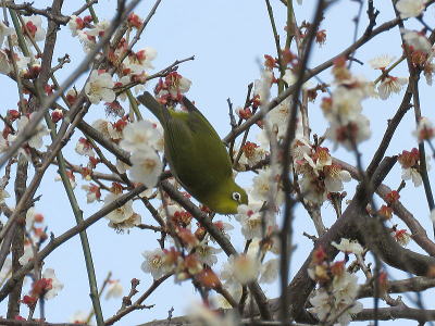 | シメ[3月6日] 今シーズンはあまり見かけませんでした | メジロ[3月6日] 散り始めた梅の花に来ていました | |