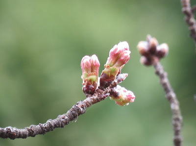| ソメイヨシノ[3月18日] 昨日、今日の暖かさが続けば明日にも開花しそうです | ヤマガラ[3月17日] 落ちている実を探していました | |