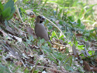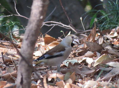 | シメ[3月23日] 落ち葉をひっくり返し餌を探しています | コチドリ[3月22日] 今日は十数羽残って居ました | |