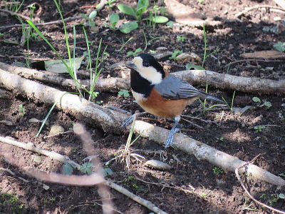| ホオアカ[3月21日] 未だ居ました、暫くぶりです | シジュウカラ[3月21日] 巣材を咥えて運んでいました | |
