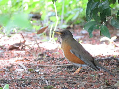 | アカハラ[4月23日] このところよく見かけるようになりました | シメ[4月23日] 嘴が鉛色、夏羽になりました | |