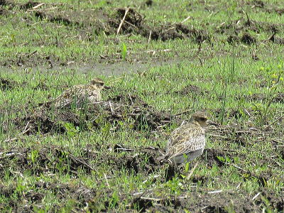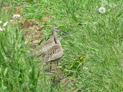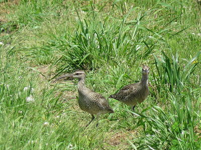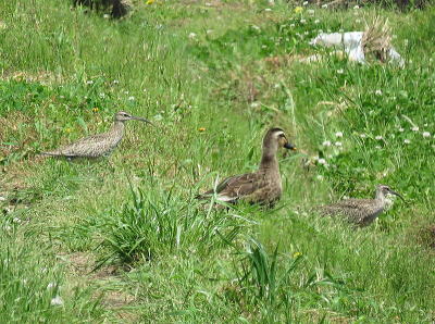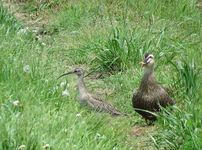 | チュウシャクシギ、カルガモ[4月29日] 何故かカルガモと一緒に動いていました | チュウシャクシギ[4月29日] 2羽だけのようです | |