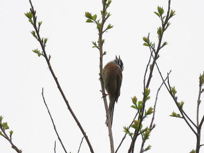 | アオサギ[4月29日] 今日は成鳥、幼鳥含め5羽いました | ホオジロ[4月27日] 気持ちよく元気に囀っていました | |