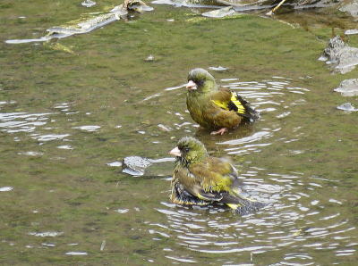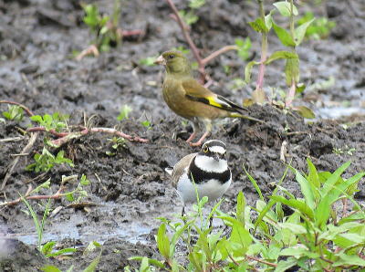 | アオサギ、チュウシャクシギ[4月29日] アオサギは幼鳥でしょうか | コチドリ、カワラヒワ[4月29日] カワラヒワが直ぐそばに下りて来ました | |