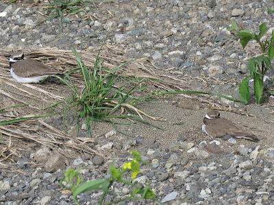 | コチドリ[4月2日] 昨年はここで2度抱卵しました、しかし大雨に流されてしまいました | コチドリ[4月2日] 昨日は何処かに行ってしまいましたが、また戻って来ていました | |