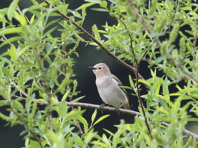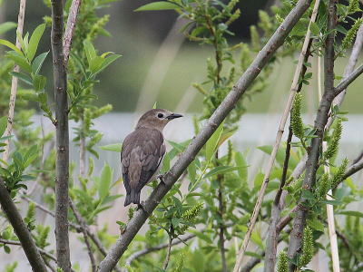 | コムクドリ[4月13日] 20〜30羽は居たようです | コムクドリ[4月13日] ヤナギの花を食べているのでしょうか | |