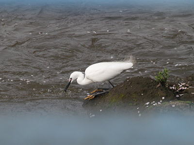 | コサギ[4月9日] 急流ですが小魚を獲っていました | ホオジロ[4月9日] 今日は囀りは聞かれませんでした | |