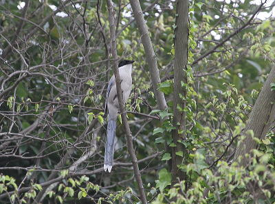 | カワラヒワ[4月13日] せっせとタンポポの実を啄んでいました | オナガ[4月13日] 普段見掛けない所に居ました | |