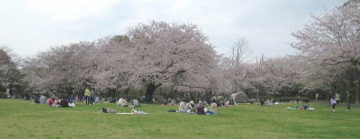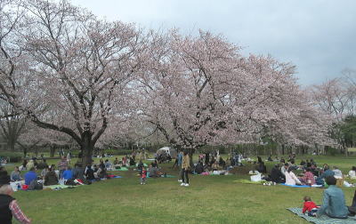 | 桜[4月4日] 朝のうちは雨でした、閑散としていました | 花見[4月3日] 毎年人出が多くなっています | |