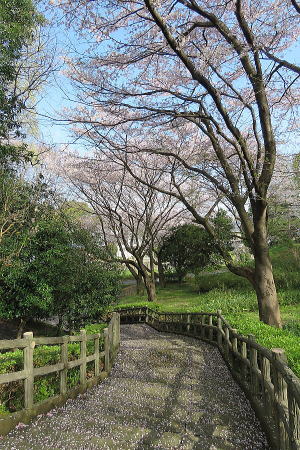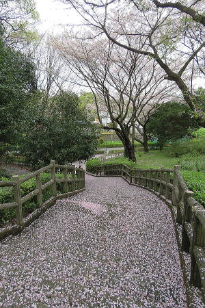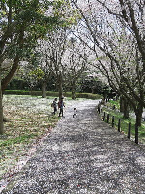 | 桜の絨毯[4月8日] 絨毯らしくなりました | 桜の絨毯[4月6日] 未だひらひらと散って来ます | |