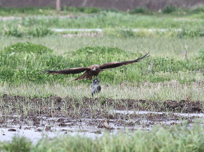 | トビ[4月9日] いきさつは分かりませんがハトを掴んで来ました。以前、引地川で泳いでいるオオバンを掴んで行ったと聞きました | コチドリ[4月9日] 近づいた1羽を追い出しました | |