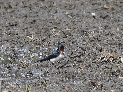 | コチドリ[4月9日] ミミズのような虫を引っ張り出しました | ツバメ[4月9日] ツバメやイワツバメが巣材集めに忙しそうでした | |