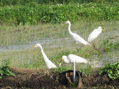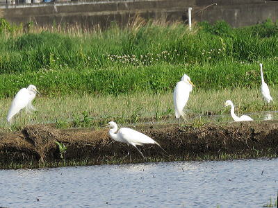 | チュウサギ[5月14日] 水の溜まった田んぼでカエルなどを獲っていました | チュウサギ[5月14日] 今日は11羽が来ていました | |