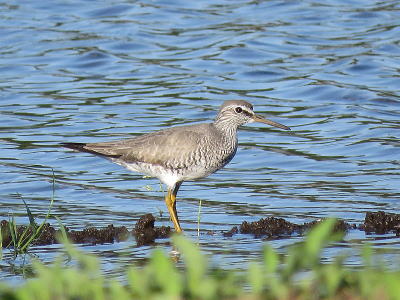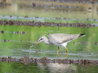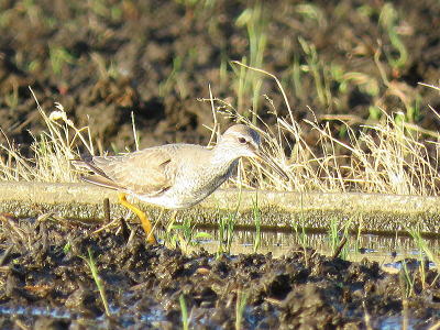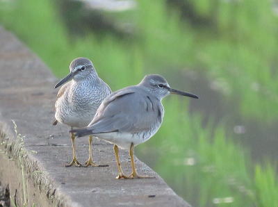 | アマサギ[5月15日] 来ているよと教えていただきました、得意のカエル獲りです | キアシシギ[5月14日] 今日も2羽見かけました、何かを獲りましたが何なのか分かりません | |