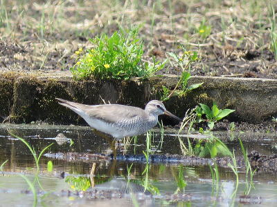| コチドリ、キアシシギ[5月12日] 一緒に一休みです | キアシシギ[5月12日] 水のある田んぼを歩いて餌を探しているようです | |