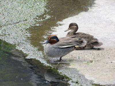 | コガモ[5月2日] いつまで居てくれるでしょうか | キビタキ♀[5月1日] 暗い木陰にいましたのではっきりとは分かりません |