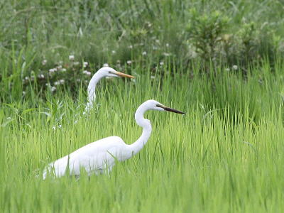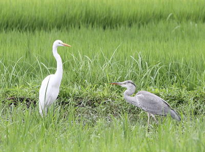 | ダイサギ、アオサギ[7月24日] どちらも若鳥でしょうか | ダイサギ[7月24日] 今日は3羽いました | |