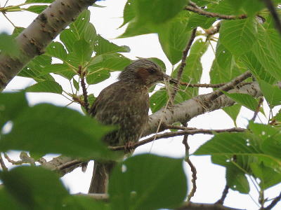 | ヒヨドリ[7月11日] 巣材をくわえていました、これから巣作りor補修でしょうか | ムクドリ[7月10日] 巣立ったばかりの幼鳥のようです | |