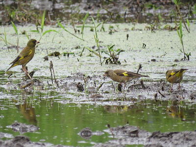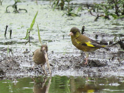 | コチドリ[7月26日] 先日からいます、♂です | カワラヒワ[7月26日] 親子でしょうか | |