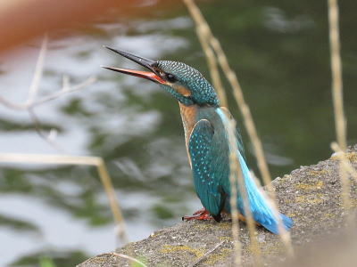 | コムクドリ[7月12日] 今日はサンゴジュにいるのを見かけました | カワセミ[7月12日] 飛び込みましたが魚を獲れずに飛んで行きました、水浴びだったのかな | |