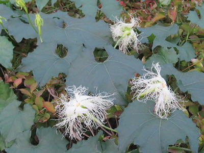 | カワラヒワ[7月26日] 棒の先の何かを食べているようです | キカラスウリ[7月25日] 一度はバッサリと刈られてしまいましたが綺麗に咲きました | |