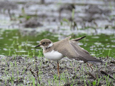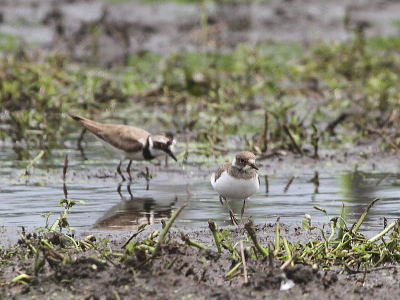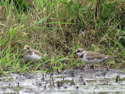 | コムクドリ[7月28日] 大群が来ていると教えて頂きました | コチドリ[7月26日] 左は幼鳥、親子のようです | |