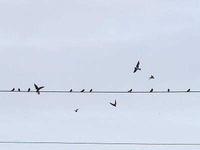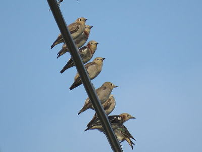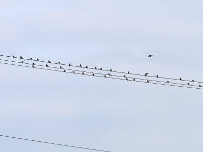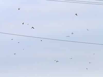 | ツバメ[7月24日] 数十羽はいました、塒入りの準備でしょうか | ツバメ[7月24日] 電線に集まって来ていました | |