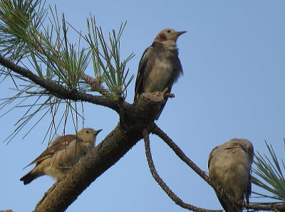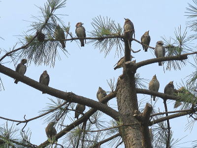 | コムクドリ[7月11日] 電線から松の木に移りました | コムクドリ[7月11日] 20羽位の群れでした、もう帰って行くのですね | |