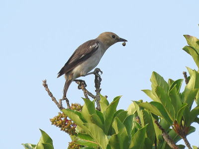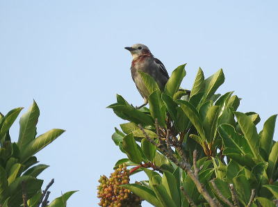 | コムクドリ[7月12日] 居たのは10羽ほどでした | コムクドリ[7月12日] まだ青い実を食べていました | |