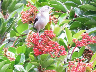 | コムクドリ[7月23日] サンゴジュはよく熟れてきました | コムクドリ[7月23日] 今日は7羽いました、先日の群れが残っているのでしょうか | |