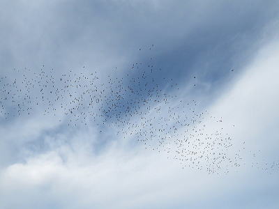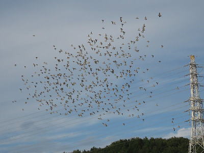 | コムクドリ[7月28日] 夕方遅くまで群れで飛んでいるようです | コムクドリ[7月28日] 幼鳥も混じっているように見えました | |