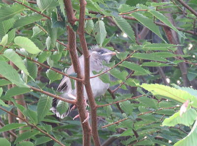 | オナガ[7月1日] 幼鳥と思われます | モズ[7月1日] あまりの暑さに喘いでいるようでした | |