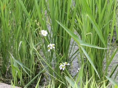 | チョウゲンボウ[7月1日] 幼鳥を狙ったのか空中をハクセキレイに追い掛けられる場面がありました | ウリカワ[7月1日] 田んぼでは厄介者ですが花は綺麗です | |