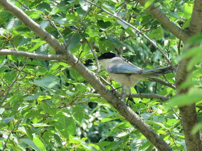 | コムクドリ[7月11日] このあと近くの大木に入りました、塒のようです | コムクドリ[7月11日] 幼鳥も一緒かどうかは確認できません | |