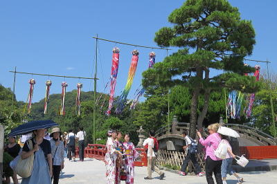 | 鶴岡八幡宮[7月7日] 七夕まつりの飾りが風に吹かれてゆらゆら | 鶴岡八幡宮[7月7日] 七夕まつりの飾り付けがされています | |