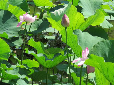 | 鶴岡八幡宮[7月7日] 梶の葉をかたどった沢山の短冊には願い事が書かれています | 鶴岡八幡宮[7月7日] 源平池のハスが咲いていました | |