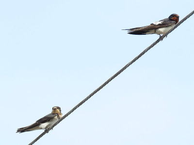 | ツバメ[7月12日] 幼鳥です、旅立ちももう直ぐです | ツバメ[7月12日] 幼鳥と親です | |