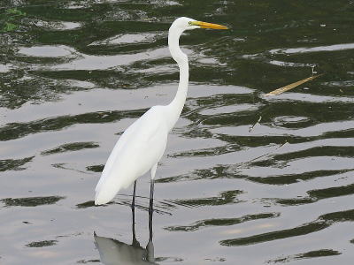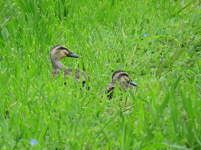 | ダイサギ[8月1日] 獲物を探しながら歩いています | カルガモ[8月1日] 暑さを避け休憩中です | |