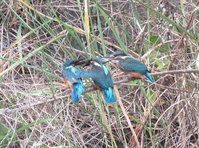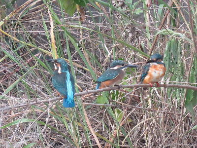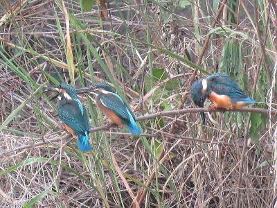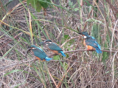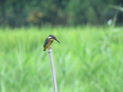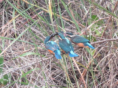 | カワセミ1[8月11日] 親子でしょう、親が魚を獲ってきました | カワセミ[8月11日] 幼鳥です、休耕田で餌を狙っていました | |