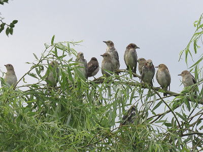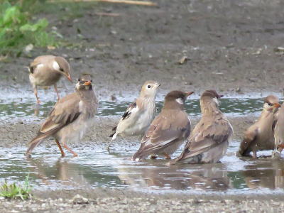 | コムクドリ[8月3日] まだ、数十羽の群れがいました | ムクドリ、コムクドリ[8月3日] この暑さです、水浴びをしたくなります | |