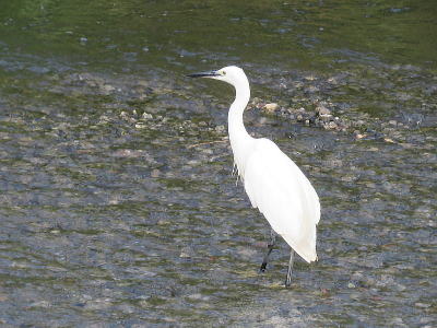 | コサギ[8月17日] 小魚が跳ねているのですがなかなか獲れません | ダイサギ[8月17日] 小さな魚を獲り飲み込んだばかりです | |