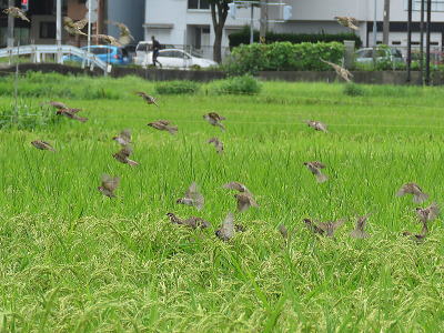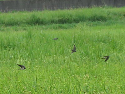 | ツバメ[8月28日] 親ツバメは飛びながら幼鳥に餌を与えていました | ツバメ[8月28日] 十数羽が稲すれすれに高速で飛び交っていました。 | |