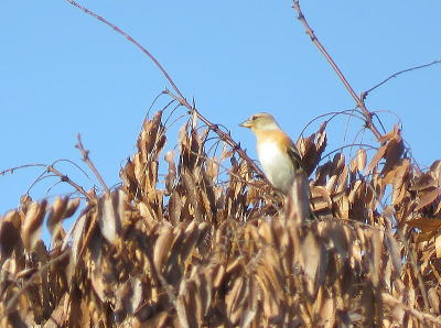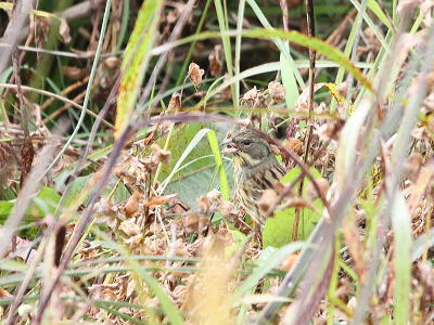 | ハイタカ[11月15日] 気が付いた時は高く上がっていました | アオジ[11月15日] 草の実を食べているようです | |