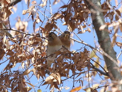 | アトリ[11月23日] 残っているケヤキの実を食べているようです | アトリ[11月23日] 20〜30羽の群れがいました、キョッキョッと小さな声が聞こえました | |